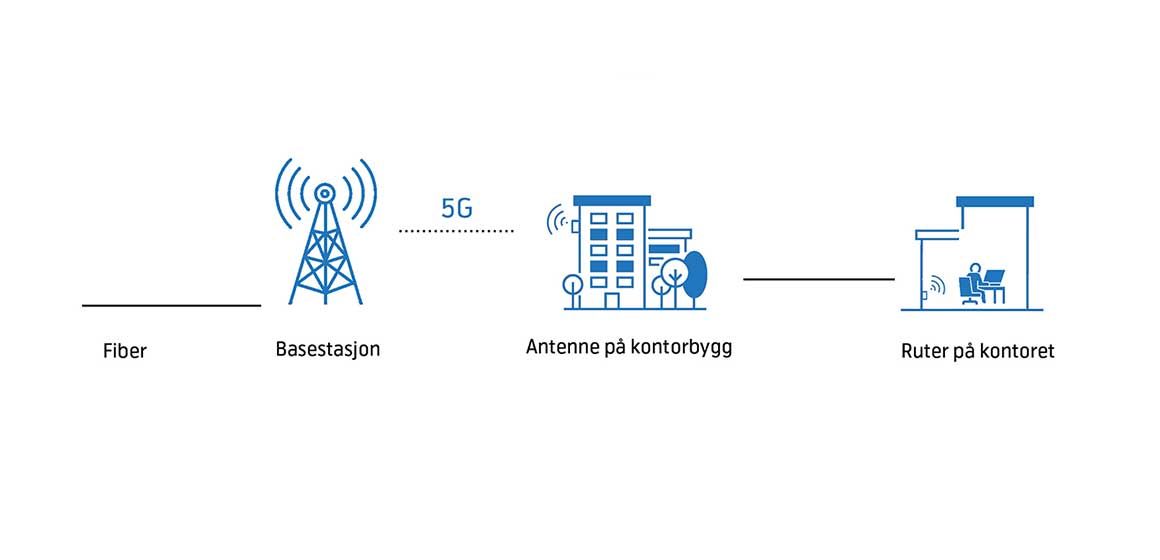 For å kunne få trådløst bredbånd må du ha god 4G/5G-dekning og kapasitet i mobilnettet. Sjekk om du kan få tjenesten der du har kontor.