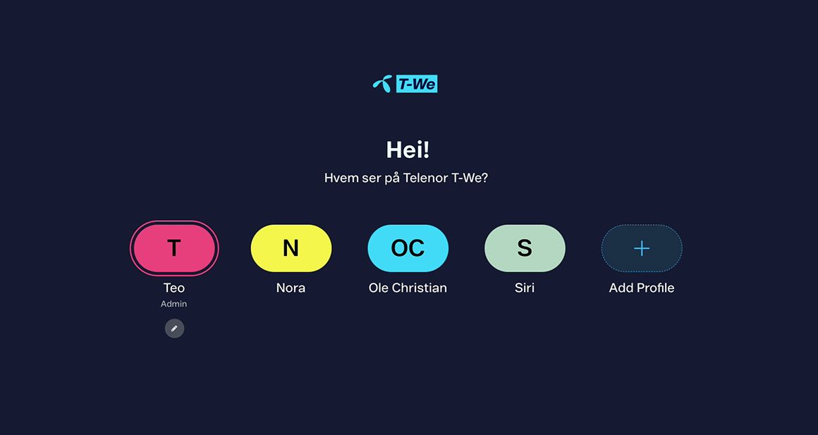I T-We og i appene våre er det godt å kjenne at opplevelsen er skreddersydd for oss. Ved å bruke egne brukerprofiler oppnår vi akkurat dette, og brukerprofilene – de har fått seg en fin oppdatering i den nye utgaven av T-We-appen.